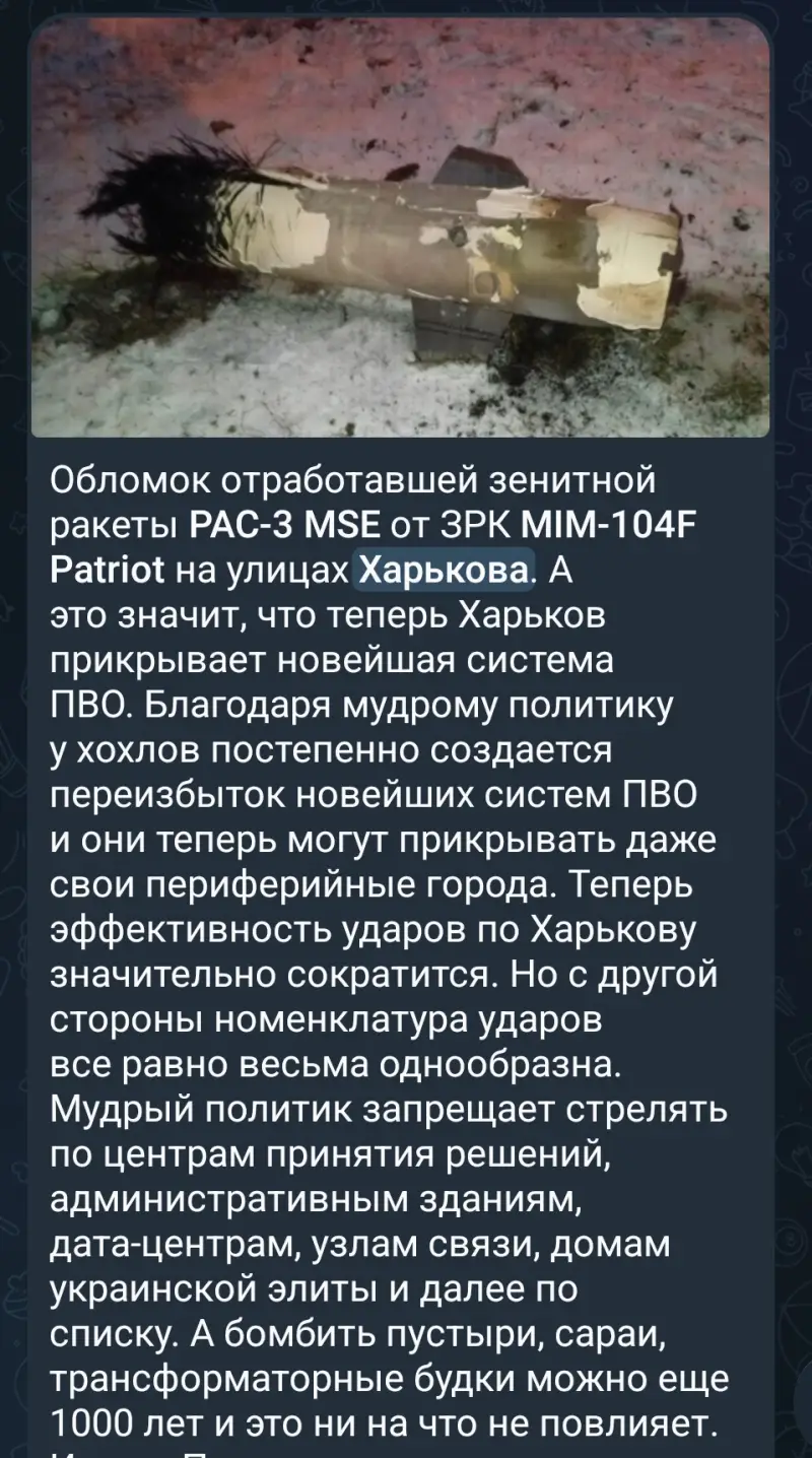 Накануне ВС РФ нанесли очередной комбинированный удар по Украине. Под воздействие попали и объекты противника на территории Харьковской области. Причем отразить атаку украинцы не смогли, несмотря на переброску ВСУ под Харьков половины батареи ЗРК Patriot.