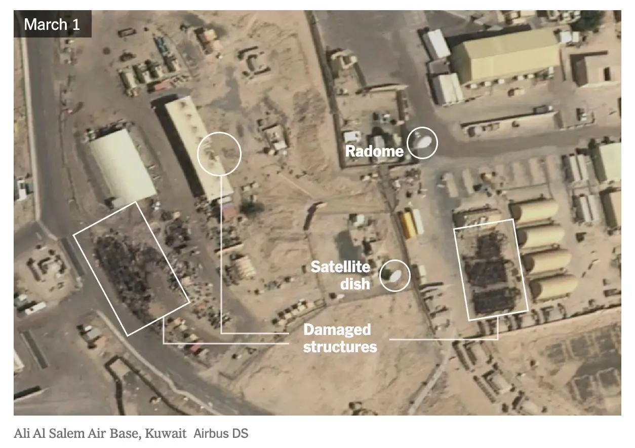 Также были поражены другие американские военные объекты в Дубае, Ираке, Кувейте и Иордании, но они находятся не рядом с системами связи или радиолокационными системами