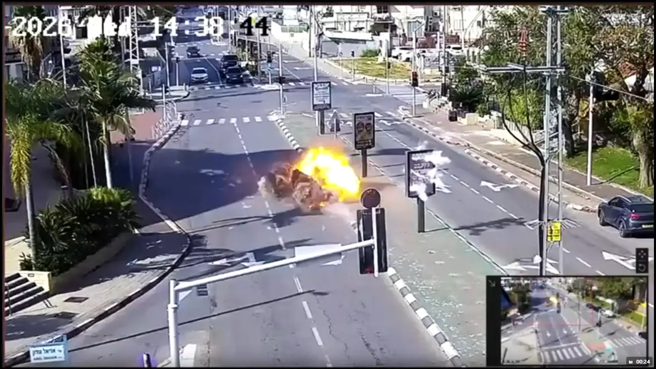 Израильские власти показали кадры с камер видеонаблюдения, установленных на улицах Тель-Авива, на которых запечатлен момент прилета и детонации одного из суббоеприпасов кассетной боевой части иранской баллистической ракеты Khorramshahr. На них видно, как боеприпас разрывается на улице в тот момент, когда там нет людей.
